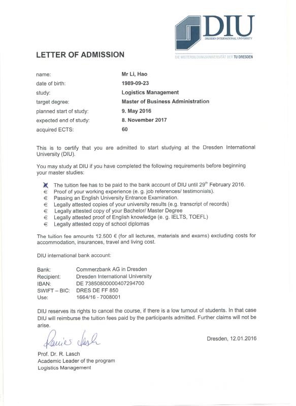 学习成绩合格并通过论文答辩者可获得德累斯顿工业大学颁发的物流管理-工商管理硕士学位证书(MBA-LM),该证书已在中华人民共和国驻德国大使馆教育处备案,并被国际认可。